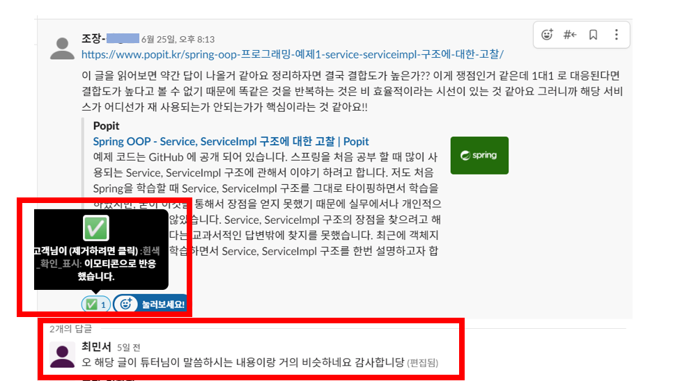 2. 이모지/답글을 통한 확인