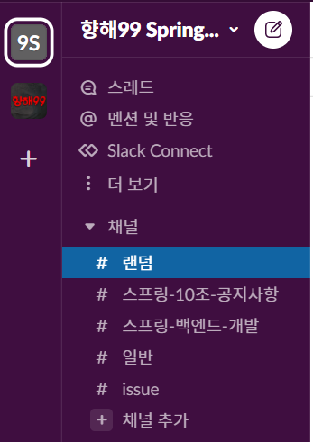 - 채널 = 하나의 팀 혹은 프로젝트