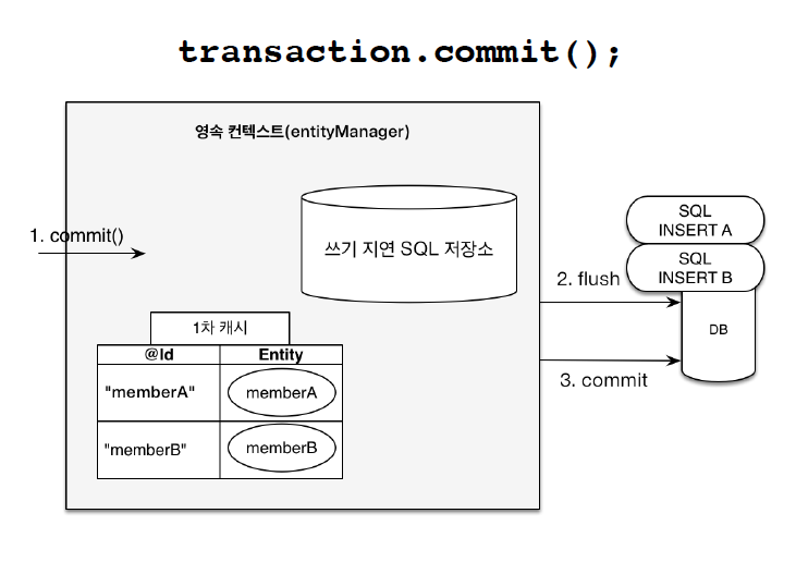 //커밋하는 순간 데이터베이스에 INSERT SQL을 보낸다.