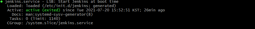 - Jenkins를 시작할 때 실행되는 데몬으로 설정한다. 자세한 내용은 /etc/init.d/jenkins를 참조하십시오.