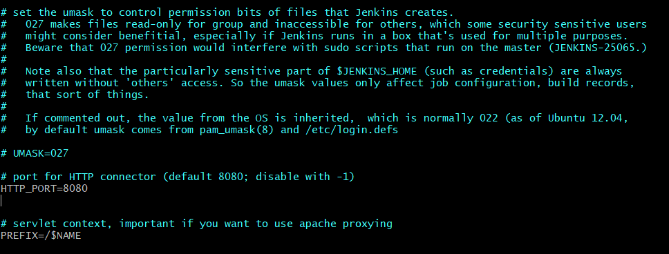 - /etc/default/jenkins시작을 위한 구성 매개변수로 채운다 . 예:JENKINS_HOME