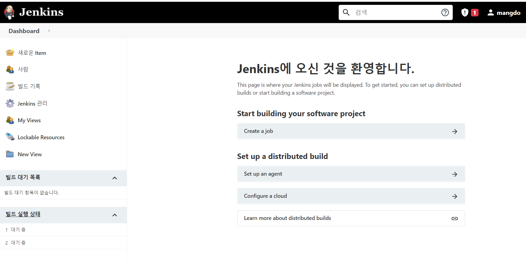 이 계정 정보는 브라우저를 통해 Jenkins 접속시 항상 입력해야 함으로 꼭 잊어버리지 않아야 한다.