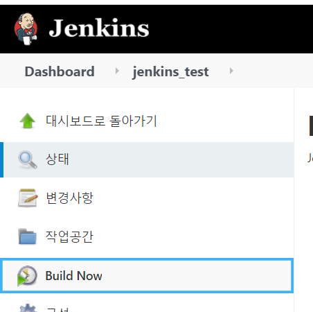 12. build Now를 선택하면 github project 코드를 받아와 설정된 build를 실행한다.
