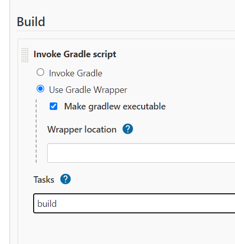 Task에는 Build시 사용될 gradle task를 입력한다. (코드를 build 하기 위해 build를 입력했다.)