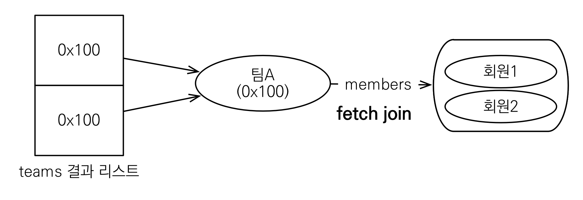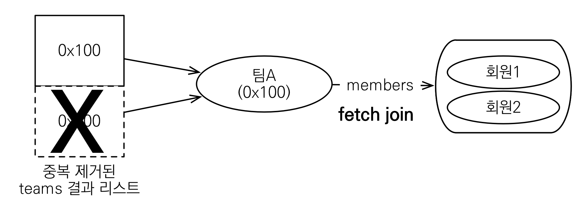 String jpql = "select distinct t from Team t join fetch t.members as m" // ์๋จ