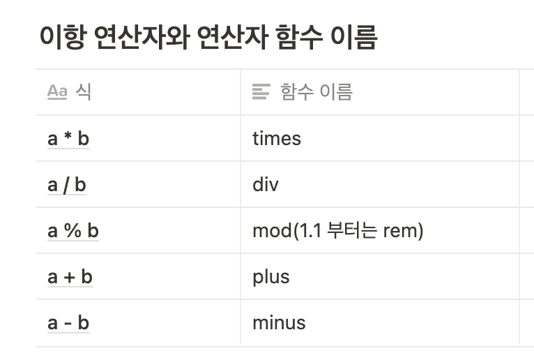 이렇듯 분명히 invoke와 같이 이름을 부여한 함수임에도 불구하고 실행을 간편하게 할 수 있게 하는 것들을 연산자라고 부른다. 그런 연산자들 몇 개를 코틀린에서 미리 정해놓았다. 대표적으로 + 연산자가 있다.