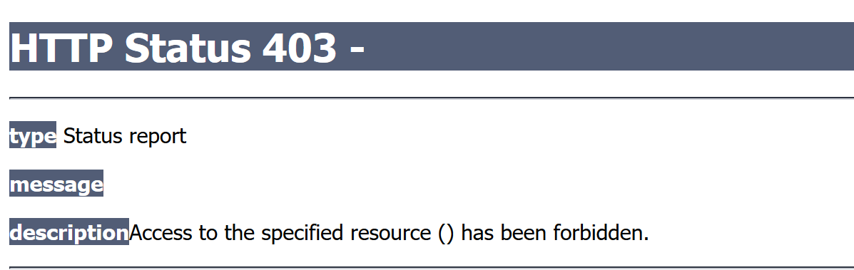로그인을 한 일반 계정이 관리자 페이지에 접근하려 할 수 있다. 이때는 다음과 같은 403에러 페이지가 뜨게 되는데 사용자 입장에서 조금 더 깔끔한 페이지를 제공하면 좋을 것이다. security-context.xml에 태그를 추가해보자.