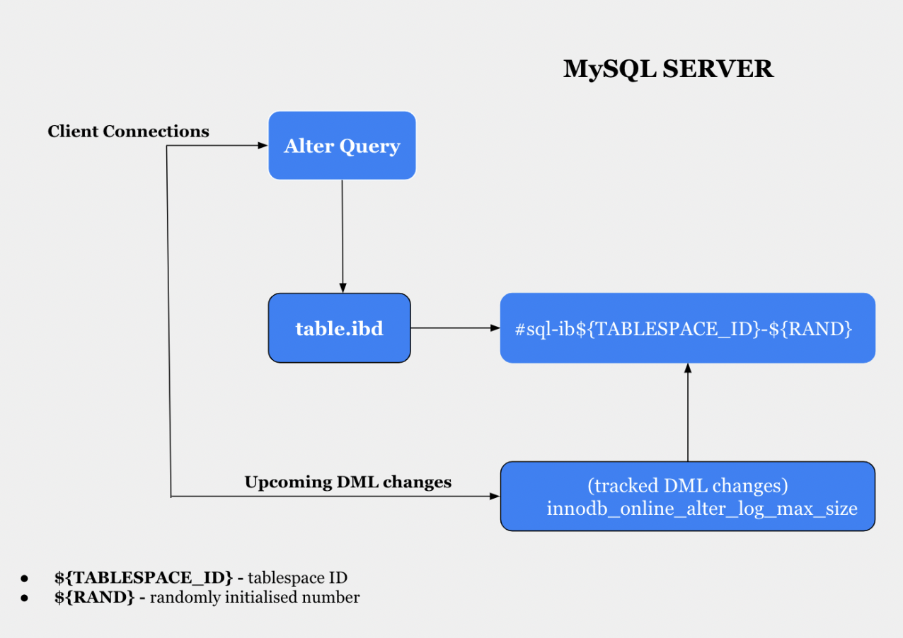 - ALTER TABLE 중 들어오는 DML 쿼리는 Online Alter Log buffer에 쌓이고 테이블 변경이 완료 후 반영한다.