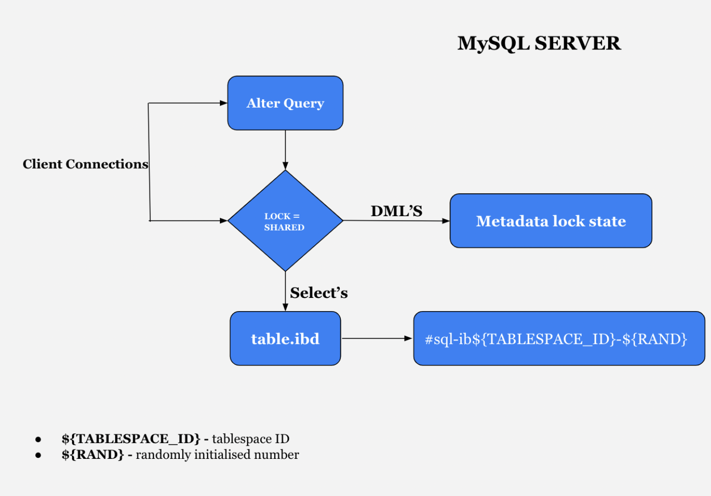 - ALTER TABLE 작업 동안 SHARED LOCK Select는 가능하지만, DML(inserts,updates,delete)은 차단된다.