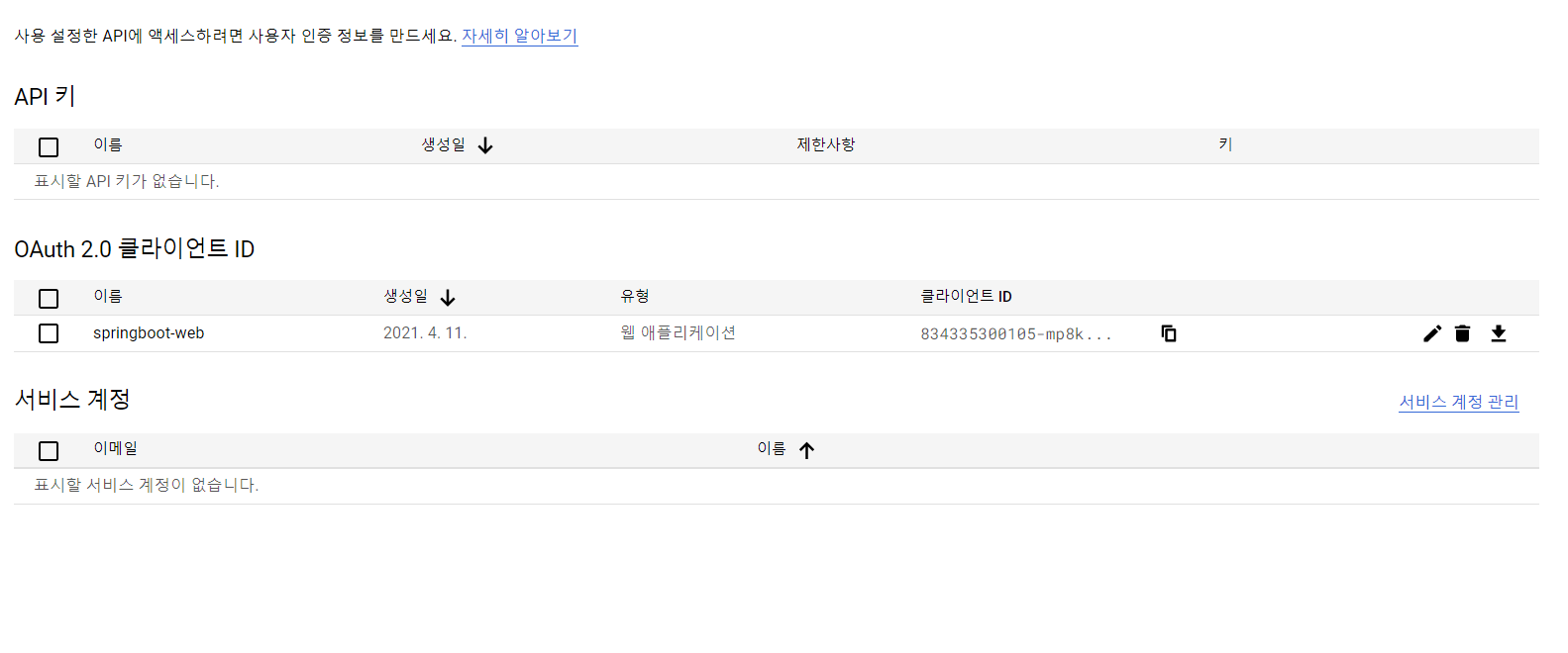 구글 서비스에 신규 서비스를 생성하고