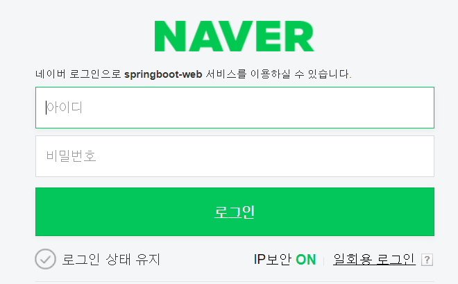 네이버 아이디로 로그인 인증을 요청한다.
