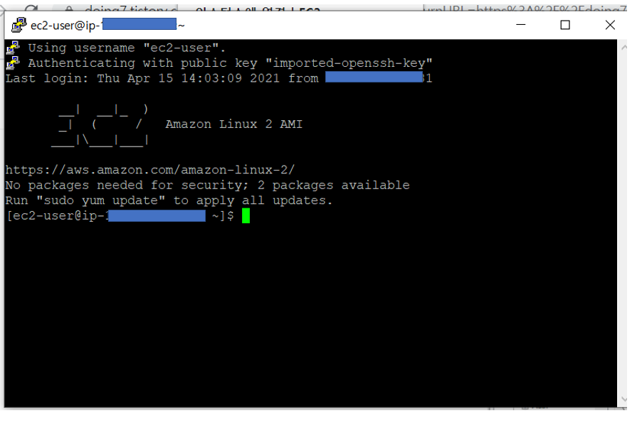 지금은 아마존 리눅스를 설치했기때문에 username이 ec2-user이다.