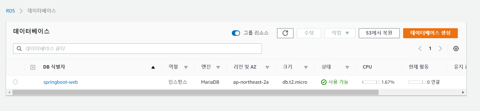 | [AWS] RDS 인스턴스에 접속하기 (4) | 2021.04.16 |