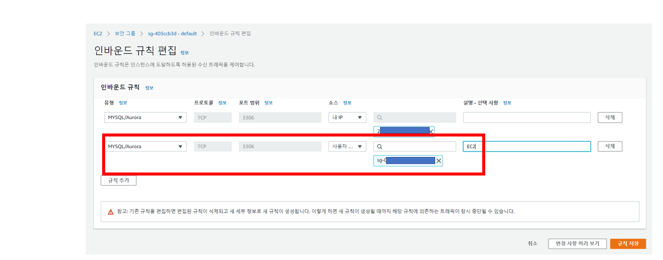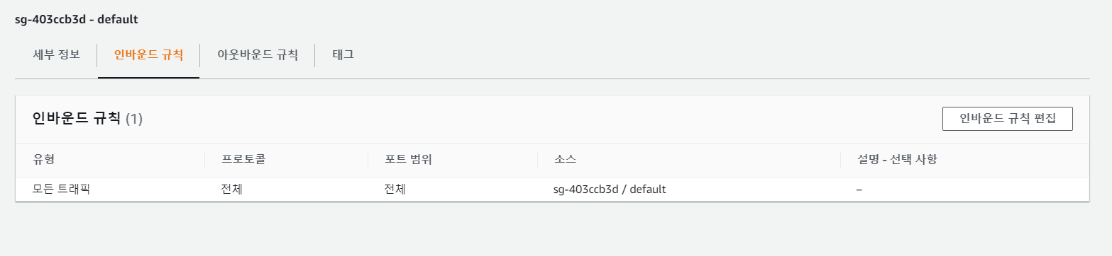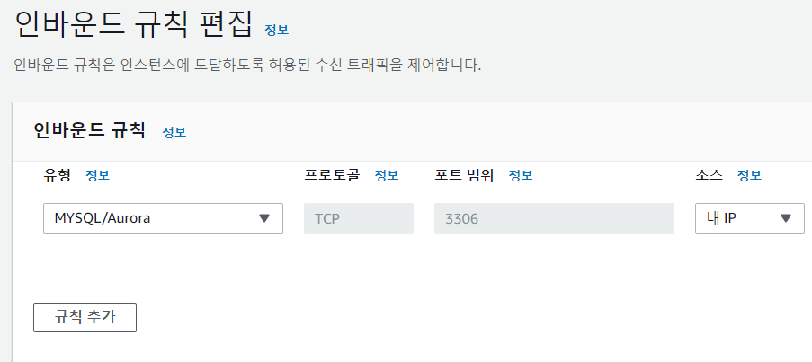아까와 비슷하게 보안그룹의 인바운드 규칙을 수정해야 한다.
