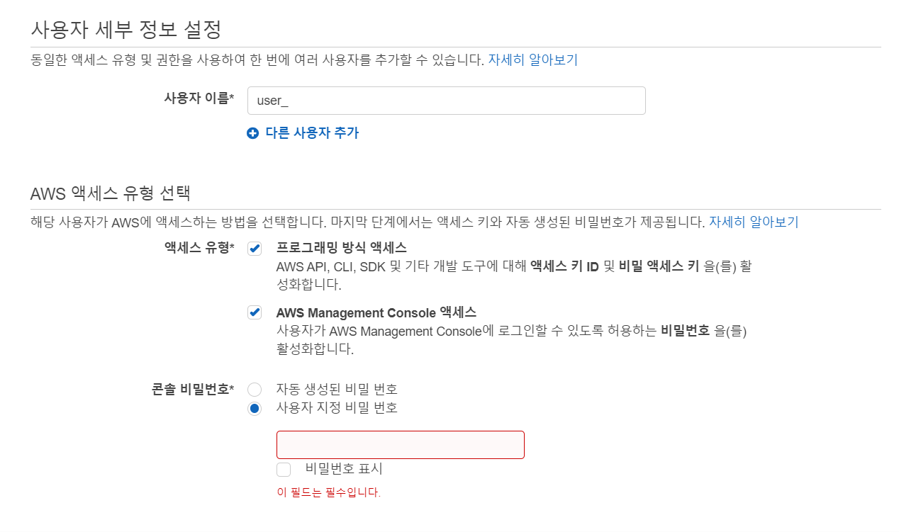 EC2서버에서 S3로 접근할 예정이고, 콘솔에서도 로그인하고 싶었기때문에 두가지 모두 만들었다.