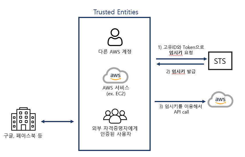 | 타 AWS 계정 및 외부 자격증명과 연동 | 불가 | 불가 | 가능 |