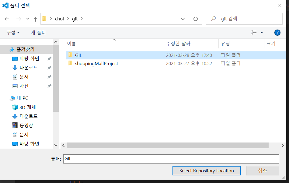 나는 git이라는 폴더 아래에 저장하기로했다.