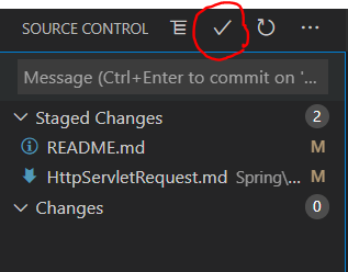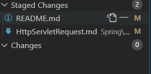 changes에 마우스를 들이대면 +버튼이 뜬다. 그 버튼을 클릭해서 스테이징 시켜준다.