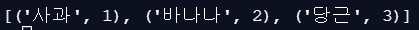 array = [('๋ฐ๋๋', 2), ('์ฌ๊ณผ', 1), ('๋น๊ทผ', 3)]