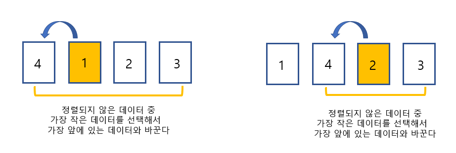 ๊ฐ์ฅ ์์ ๋ฐ์ดํฐ๋ฅผ ์ฐพ์์ ์์ผ๋ก ๋ณด๋ด๋ ๊ณผ์ ์ N-1๋ฒ ๋ฐ๋ณตํ๋ฉด๋๋ค.