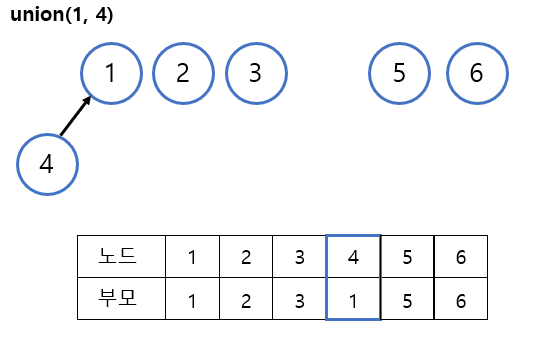 2. ๋ฃจํธ๋ ธ๋๊ฐ ์๋ก ๋ค๋ฅด๊ธฐ ๋๋ฌธ์ ๋ ๋ ธ๋์ ๋ํด union์ฐ์ฐ์ ์ํํ๋ค.