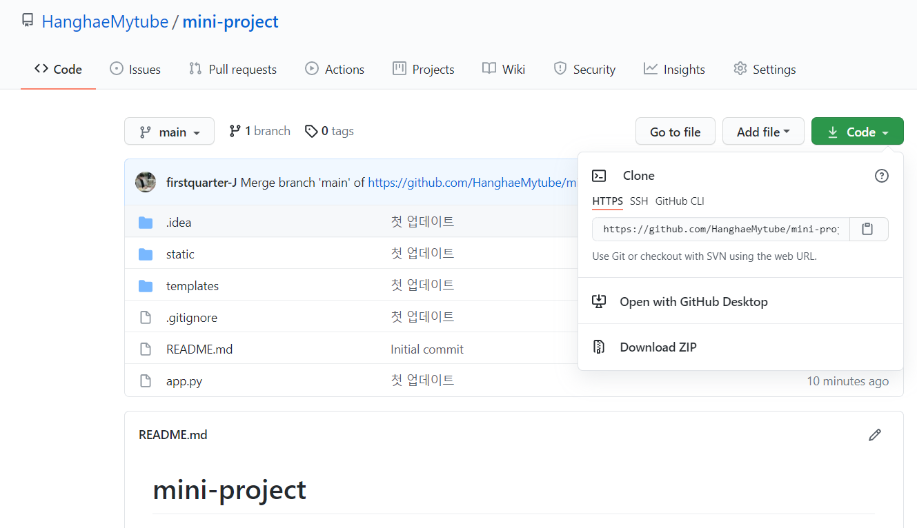 원격저장소(github)에서 파일을 가져오는 것입니다!