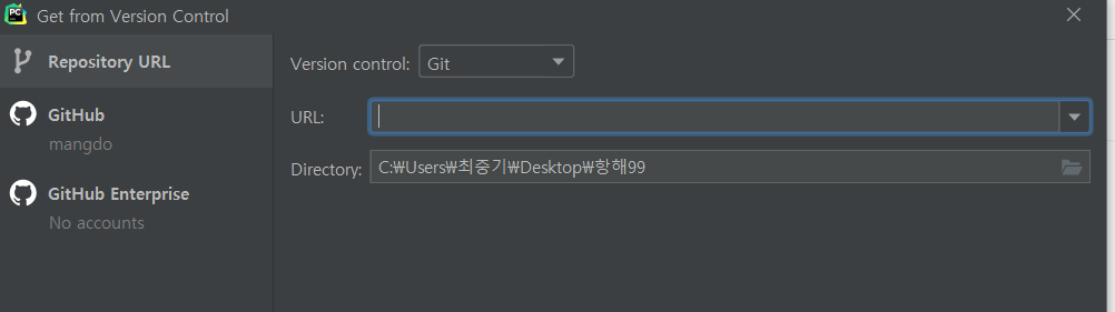 URL은 연결하고 싶은 리포지토리 주소를 넣으시면됩니다!