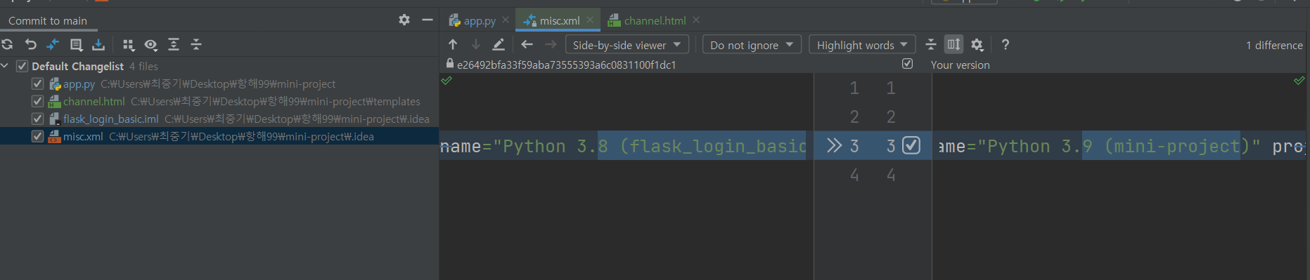 제가 작업한 파일들은 저렇게 다른 색깔로 나오게 됩니다.