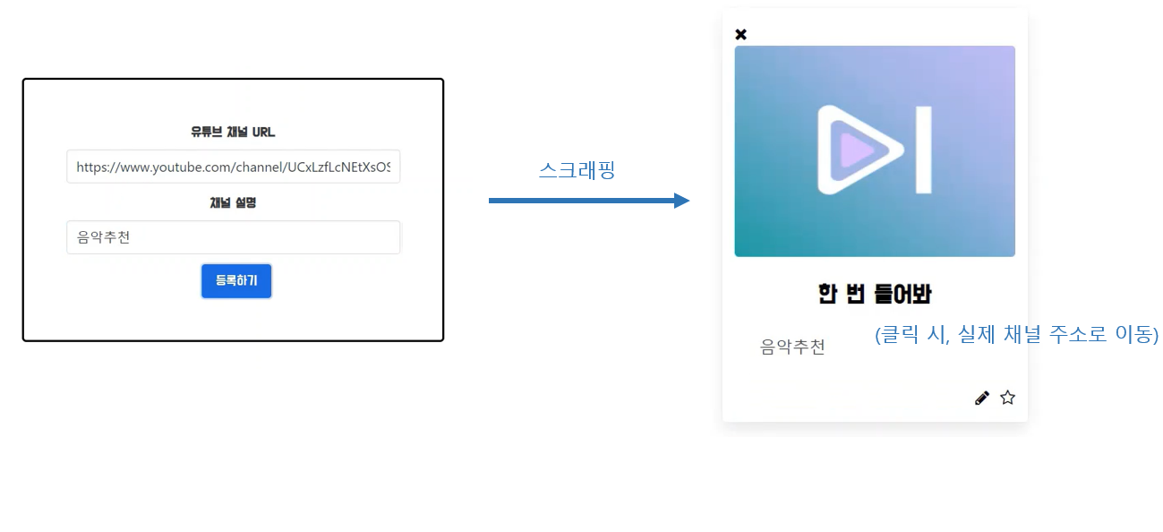 : 유튜브 URL을 입력받으면 유튜브 채널명, 섬네일 이미지, 채널 주소를 스크래핑합니다.