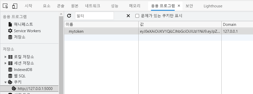 : 실제 제가 JWT를 사용해서 만든 Flask 프로젝트를 보면 다음과 같습니다.