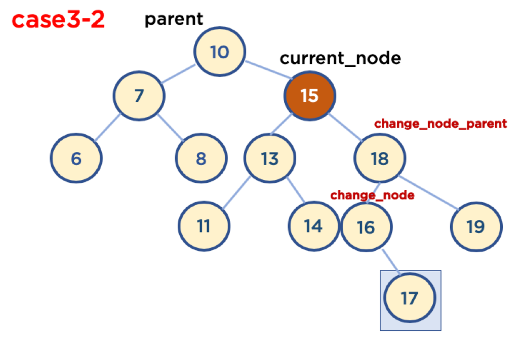 3-2. ์ญ์ ํ ๋ ธ๋๊ฐ parent node์ ์ค๋ฅธ์ชฝ์ ์๋ค.