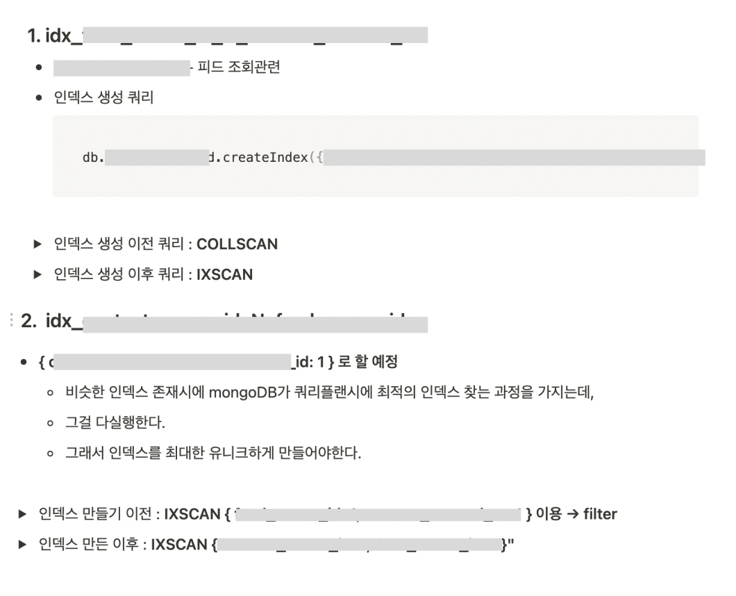 ์ฒ์ ์ฌ์ฉํด๋ณด๋ Database๋ค๋ณด๋, ์ฟผ๋ฆฌ ์คํ๊ณํ์ ์์ธกํ๊ธฐ ์ด๋ ค์ ๋ค. ๋๋ฌธ์ ์ธ๋ฑ์ค ์ค์ ์๋ ๊ณ ๋ฏผ์ด ๋์์๋ค. ์ฌ์ฉํ๋ ๋ชจ๋ ์ฟผ๋ฆฌ๋ฅผ ํ๋์ฉ ๋๋ ค๊ฐ๋ฉด์ ์คํ๊ณํ์ ๋ถ์ํ๊ณ ์ธ๋ฑ์ค๋ฅผ ๋ง๋ค์ด์คฌ์๋ค. ์ด๋ฒ ํฌ์คํ ์ด ๋๋ฌด ๊ธธ์ด์ ธ์ ๋ค๋ฅธ ํฌ์คํ ์์ ๋ ๊ตฌ์ฒด์ ์ผ๋ก ์ค๋ช ํด๋์๋ค. MongoDB์์ ์คํ ๊ณํ ํ์ธํ๋ ๋ฐฉ๋ฒ