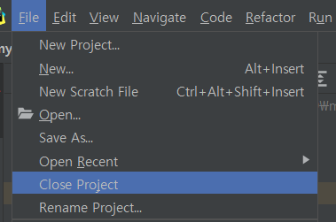 기존의 코드가 열려있으시다면 file>close Project해주세요!