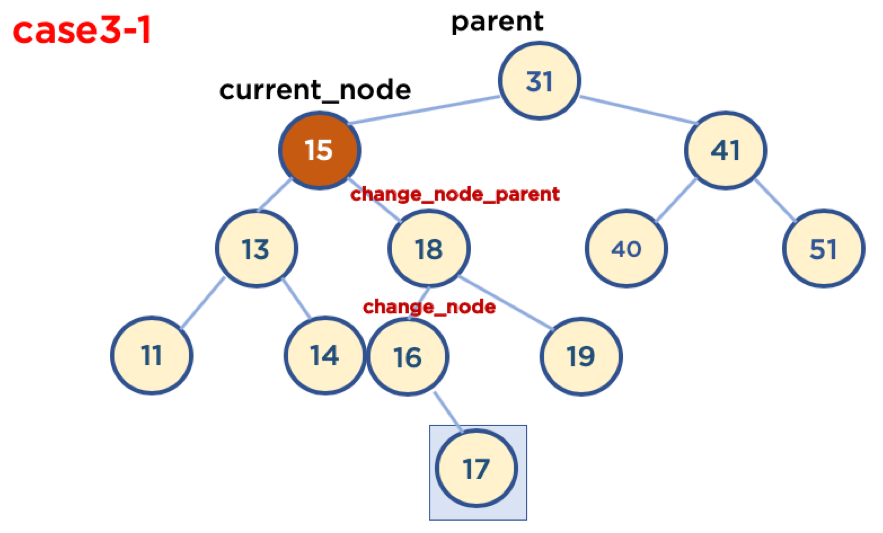 3-1. ์ญ์ ํ ๋ ธ๋๊ฐ parent node ์ผ์ชฝ์ ์๋ค.